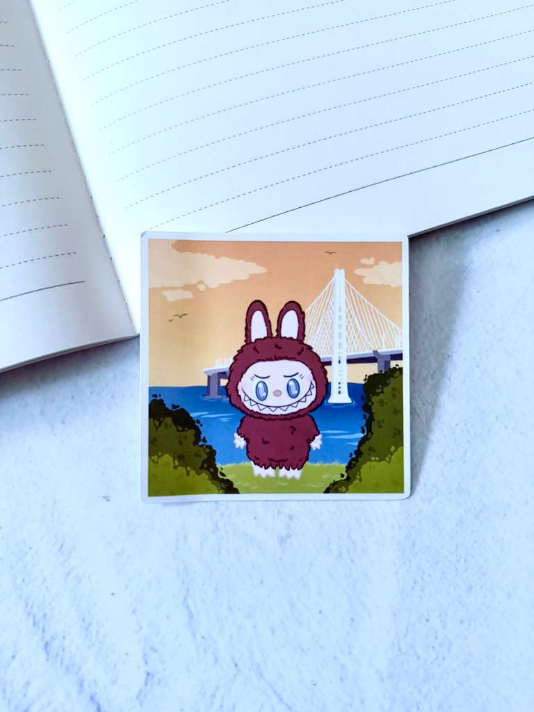 This 3-inch sticker features Labubu standing proudly in front of the iconic Bay Bridge, ready for a little Bay Area adventure. Printed on durable, water-resistant material, it’s perfect for decorating your laptop, water bottle, journal, or travel gear.