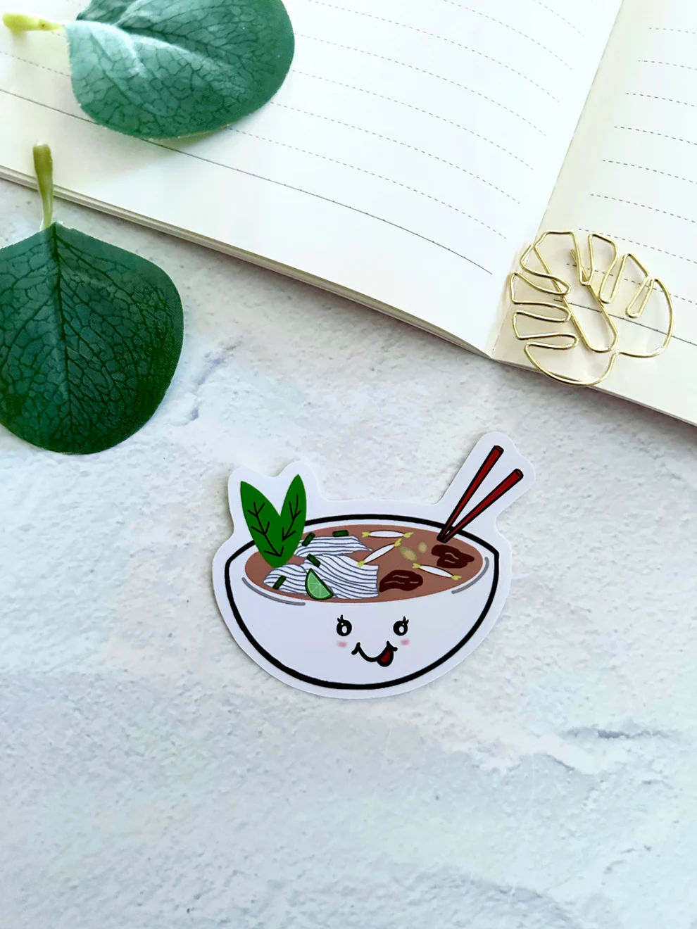 Spread noodle joy with our Happy as Pho Die Cut Sticker! Designed for foodies and pho lovers, this fun sticker brings instant good vibes. Whether you’re decorating your laptop, water bottle, notebook, or phone case, this pho-themed sticker adds a delicious touch to your daily essentials.