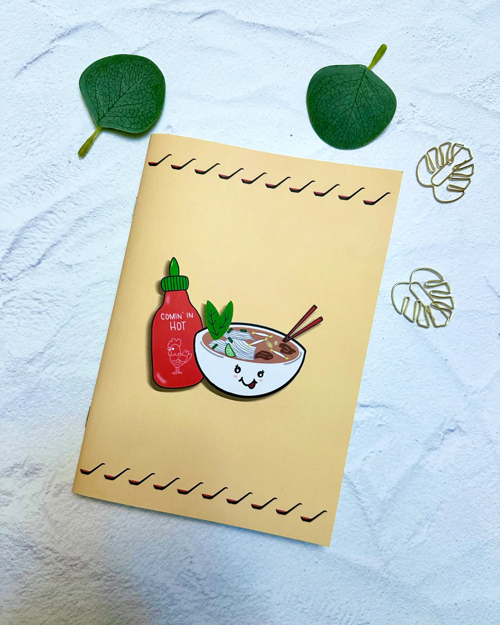 In addition to its functionality, the cover design adds major charm. With adorable illustrations of steaming pho bowls and vibrant sriracha bottles, it captures the cozy, spicy essence of your favorite comfort foods. Plus, the cute design makes it a standout piece on any desk or shelf.