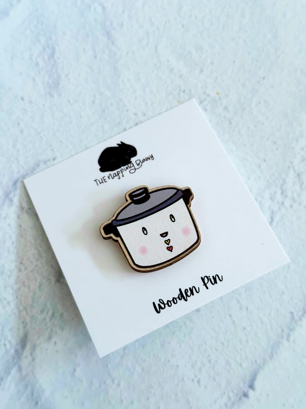 With its eco-friendly material, durable backing, and irresistibly cute design, the Rice Cooker Wooden Pin stands out as a fun, meaningful addition to any accessory collection. Whether you’re dressing up a casual outfit or curating your pin board, this tiny rice cooker is ready to bring the comfort of warm meals and big smiles.