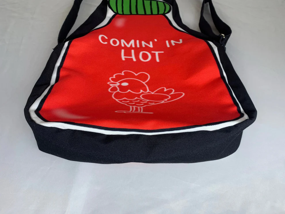 Add a fiery touch to your wardrobe or give it as a fun gift for someone who loves sriracha. This bag combines style, function, and a love for hot sauce, making it the perfect accessory for every adventure. Spice up your day and keep things hot, because life’s too short for bland accessories!